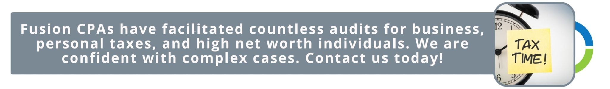 Fusion CPAs have facilitated countless audits for businesses, personal taxes, and high-net-worth individuals. We are confident with complex cases and can implement accounting software to help you track your finances to ensure accurate records. Contact us for help today!