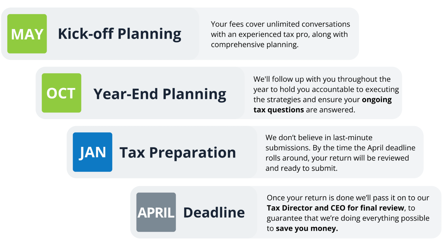 From tax planning to a longer-term project, we can assist you with: