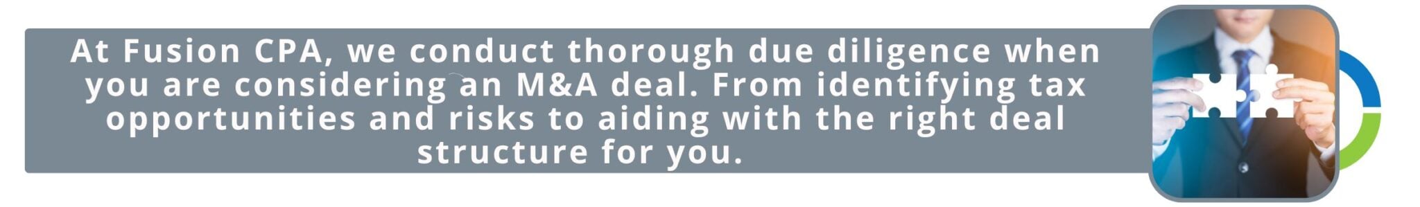 At Fusion CPA, we partner with you to conduct thorough due diligence, including identifying tax opportunities and risks that might otherwise go unnoticed. We help you structure your deal for optimal tax efficiency and seamless integration to ensure sustainable growth post-acquisition. We can also help you set up accounting software to streamline the process and ensure compliance. Contact us today!