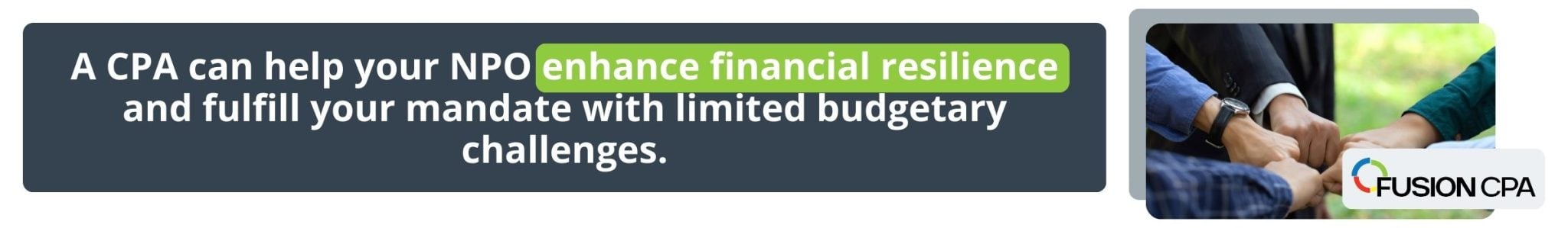 At Fusion, our CPAs work closely with our business integrator to ensure that projects are managed effectively and within budget. Most importantly, we have years of experience helping NPOs study their numbers to ensure the greatest impact with the resources they have. Contact us for help today!